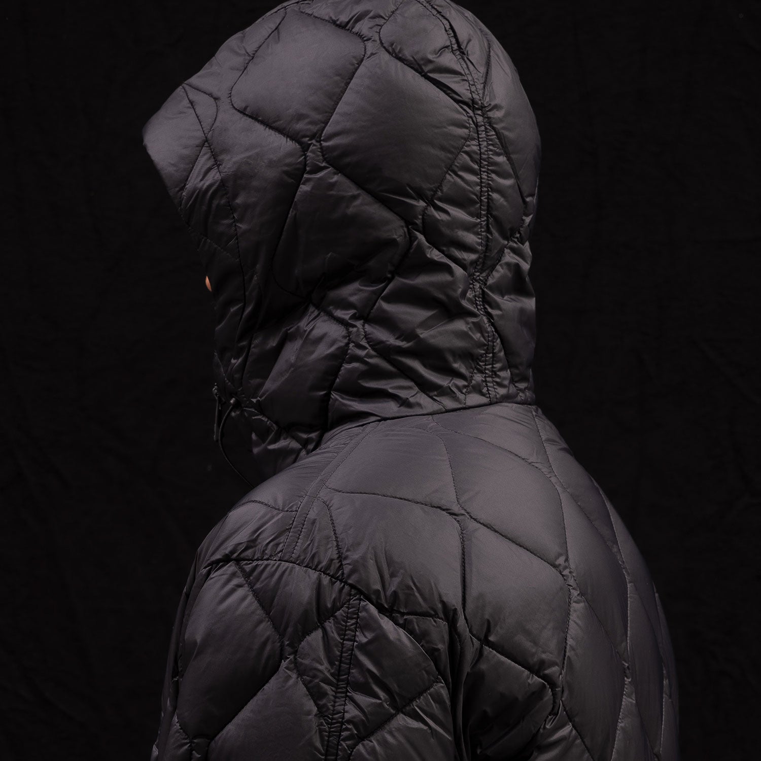 The insulation consists of 100% recycled polyester from Freudenberg and is applied with precision rather than fixed through traditional quilting. This allows the filling to move naturally within the garment, creating more even thermal performance, improved mobility and a lighter feel.